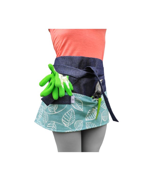 Tämä esiliina on erittäin hyödyllinen kukkakaupoissa, koska siinä on ripustimet saksille ja suurille etuharjoitsijoille tai esineille