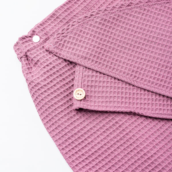 Dažādas pieejamās krāsas lieliski uzsūc mitrumu, ļoti mīksta un patīkama ķermenim. Satur 3 pogas priekšpusē, elastīgo gumiju aizmugurē. Sieviešu mīksts Vannas dvielis ar matu žāvētāja vāciņu, ērti lietojams peldbaseinos, sporta zālēs, SPA, ģērbtuvēs, vannas istabās.