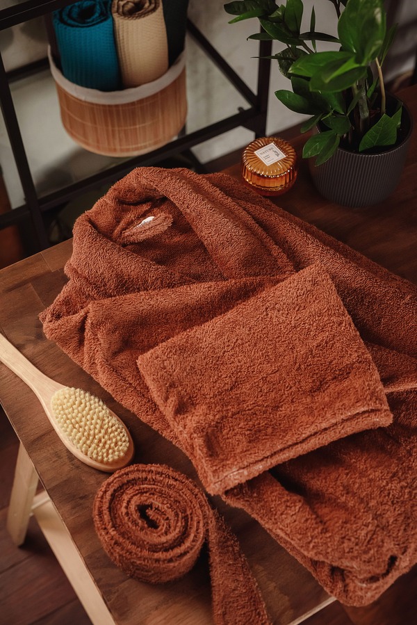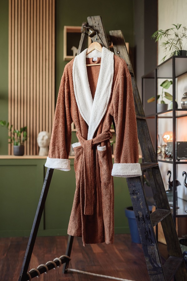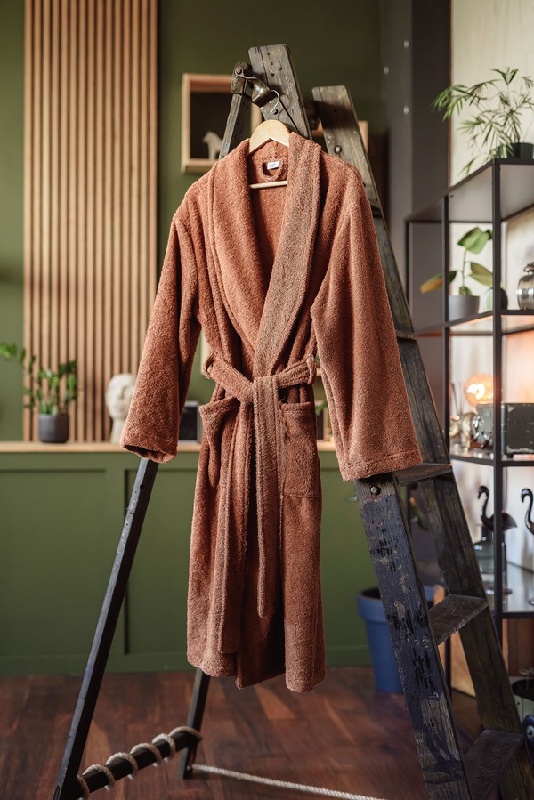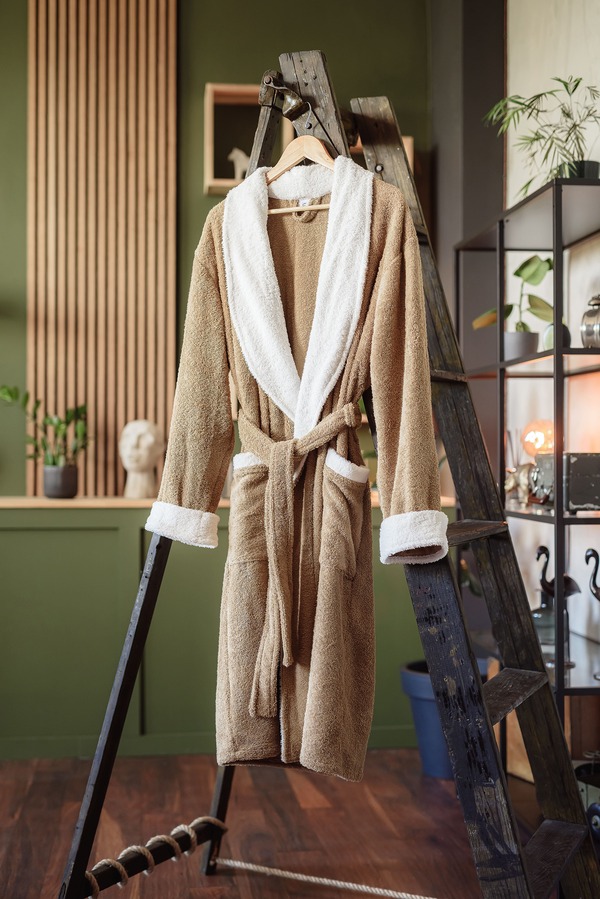 Halāts ir izgatavots no dabīga 100% kokvilnas auduma.